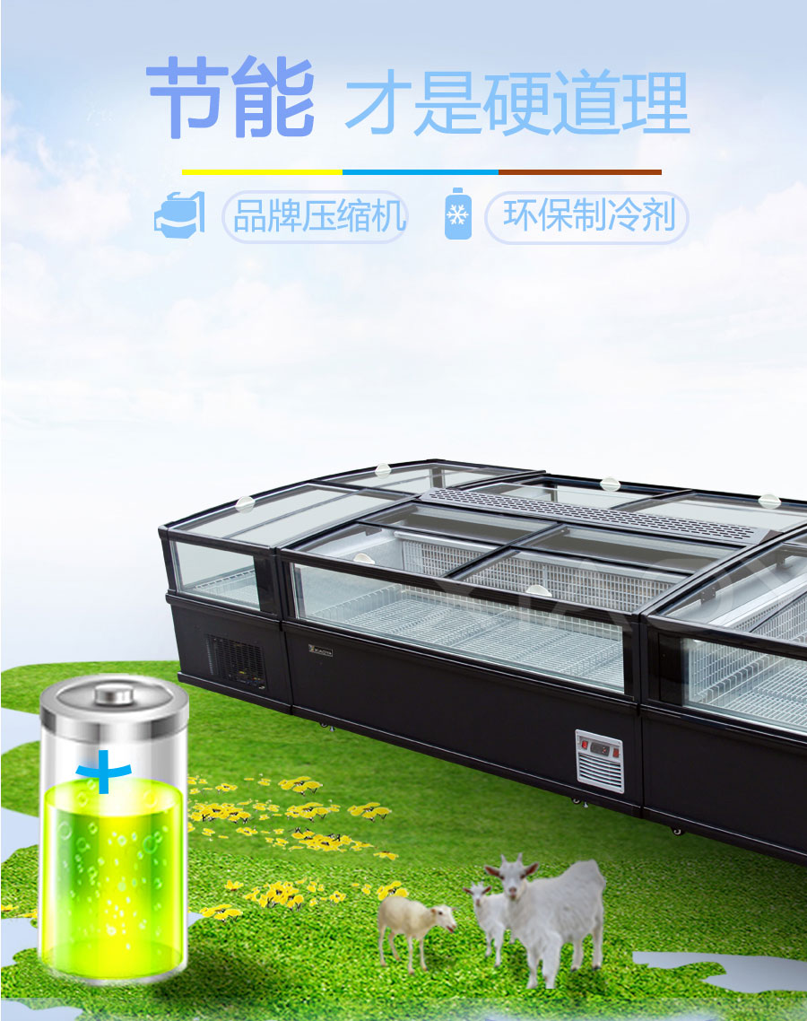 運行溫度為L1(<-15℃),用于展示和銷售各種肉制品、海產品、冰淇淋、速凍水餃等冷凍食品。