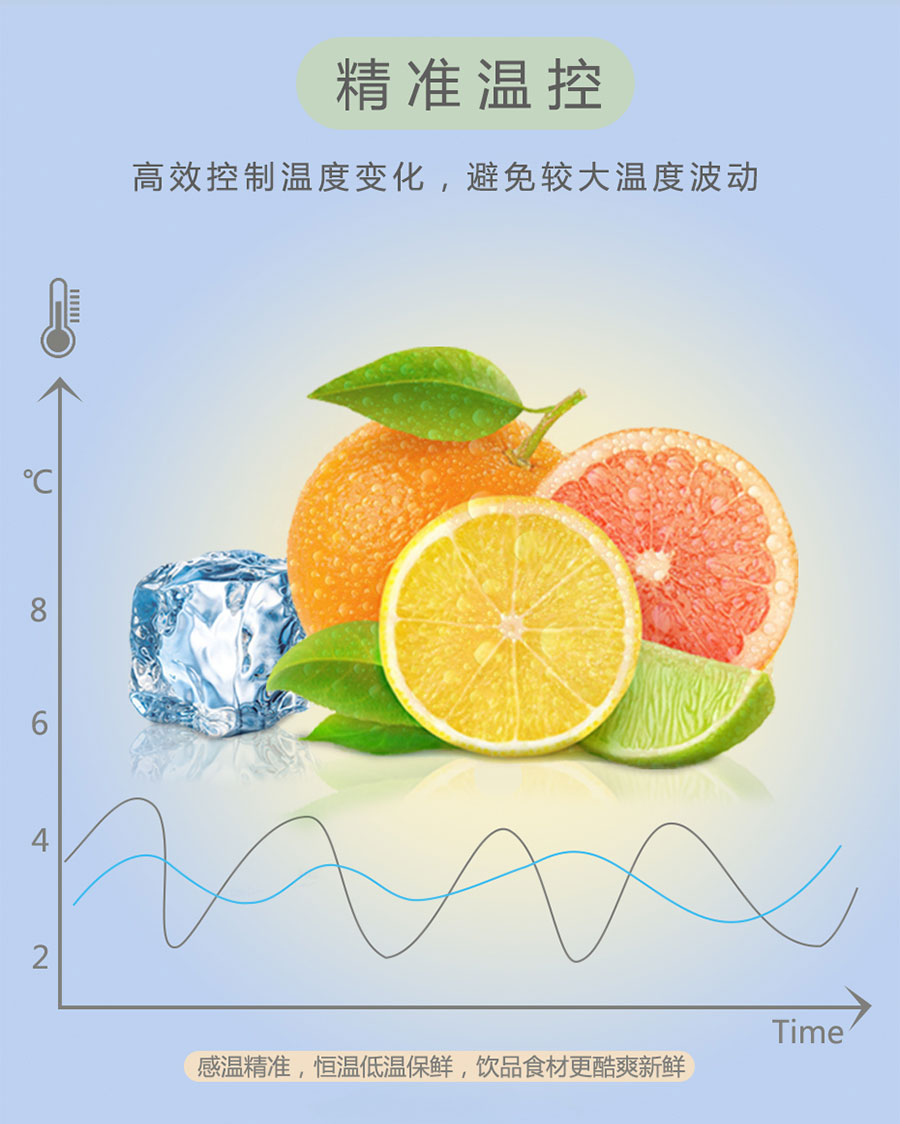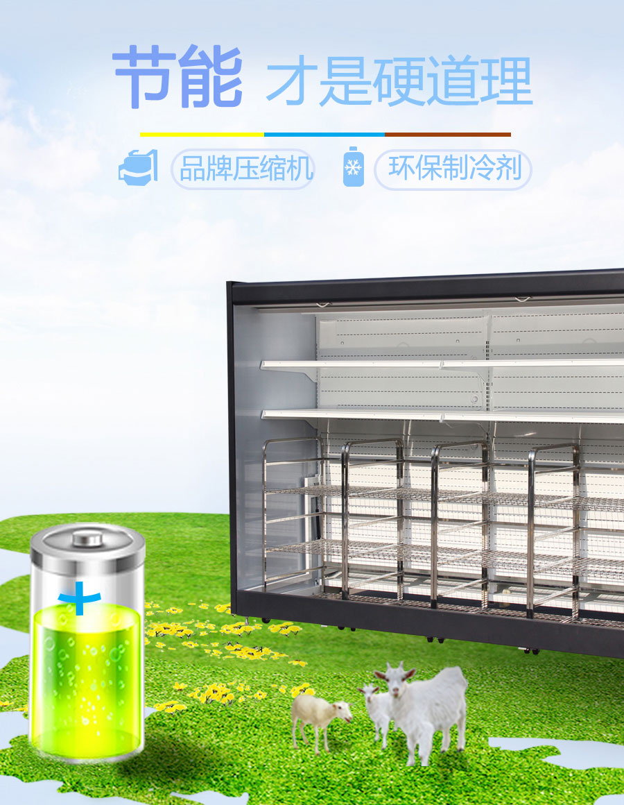 ★采用獨特的風(fēng)幕設(shè)計和背板出風(fēng)技術(shù),溫度均勻,有效降低陳列柜能耗。